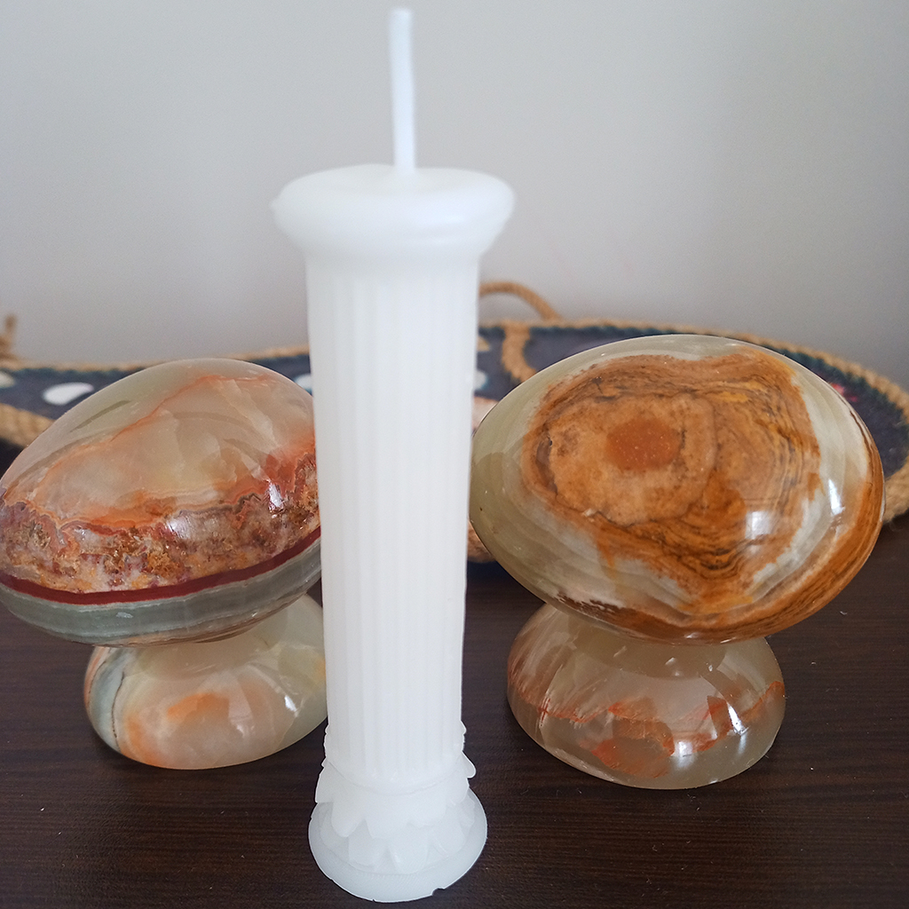 Beyaz mum, yaşam alanlarında huzur ve dinginlik hissini güçlendirir. Özellikle pastel dekorasyonlarla mükemmel uyum sağlar ve ortamın enerjisini dengeler.